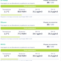 Всички останали параметри за качеството на въздуха, които се измерват от четири станции на територията на общината, можете да следите в реално време тук: http://sevlievo.bg/bg/article/5256/monitoring.html