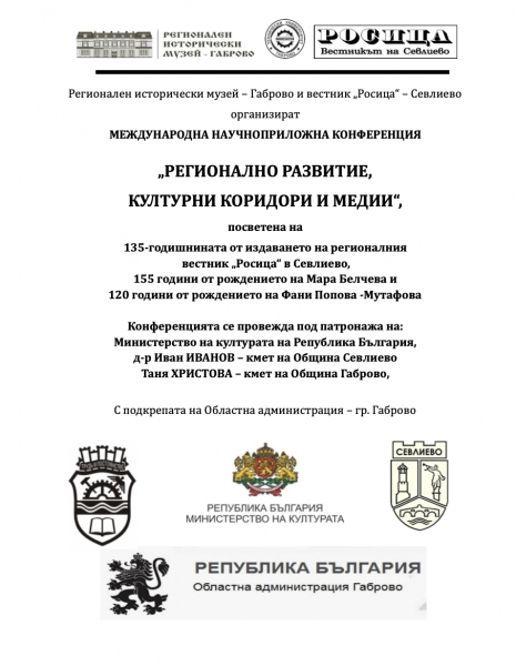Покана за международна научноприложна конференция „Регионално развитие, културни коридори и медии“ в Севлиево