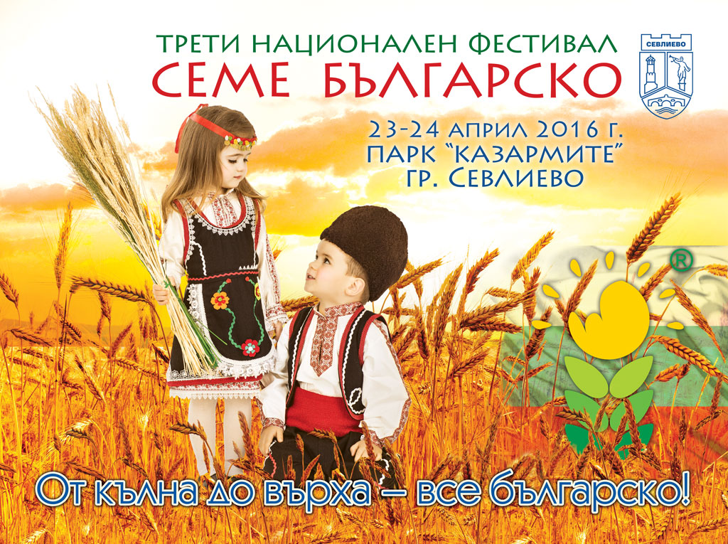 Министърът не земеделието и храните Десислава Танева, евродепутатът от ГЕРБ/ЕНП инж.Владимир Уручев и кметът на Севлиево д-р Иван Иванов ще открият третия национален фестивал „Семе българско“. Началото ще бъде поставено утре, 23 април от 10:30 часа в парк „Казармите“. Сред официалните лица ще бъдат още и евродепутатът Андрей Новаков, народният представител Добромир Проданов и областният управител на Габрово Николай Сираков. След откриването гостите и посетителите на фестивала ще засеят български рози, които ще очертаят националния флаг на България. Малко по-късно, от 14:30 часа в хотел Севлиево – Плаза министър Танева ще открие Националната конференция „Традиционните български храни, сортове и породи - потенциал за местно развитие в България“, която се организира от инж.Владимир Уручев, Министерство на земеделието и храните и Община Севлиево.